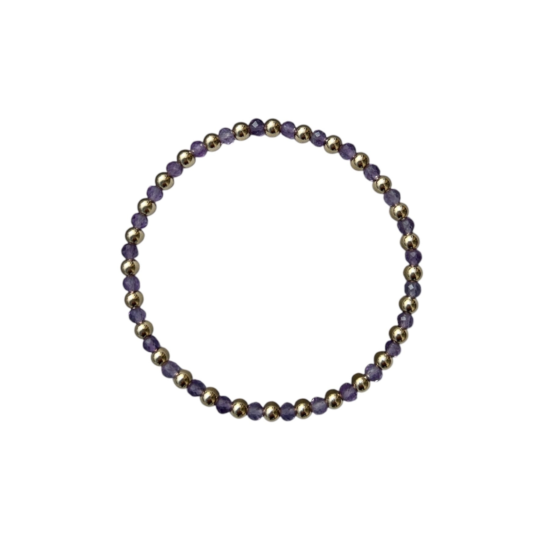 February Amethyst 3-4mm Birthstone Bliss Stretch Bracelet with 4mm 14 karat Gold filled Beads