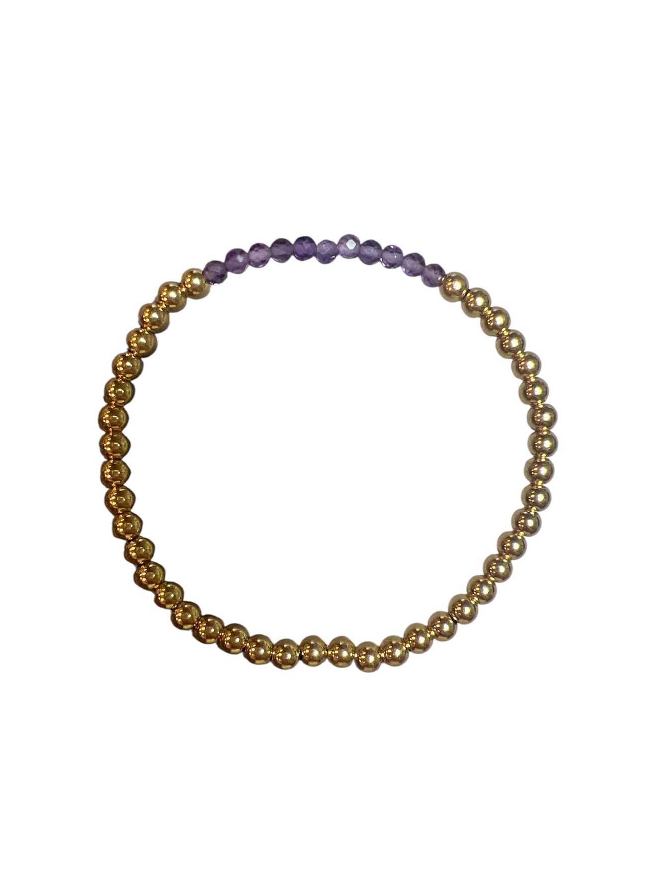FEBRUARY Birthstone: Amethyst + Gold Filled Beaded Birthstone Bar Stretch Bracelet