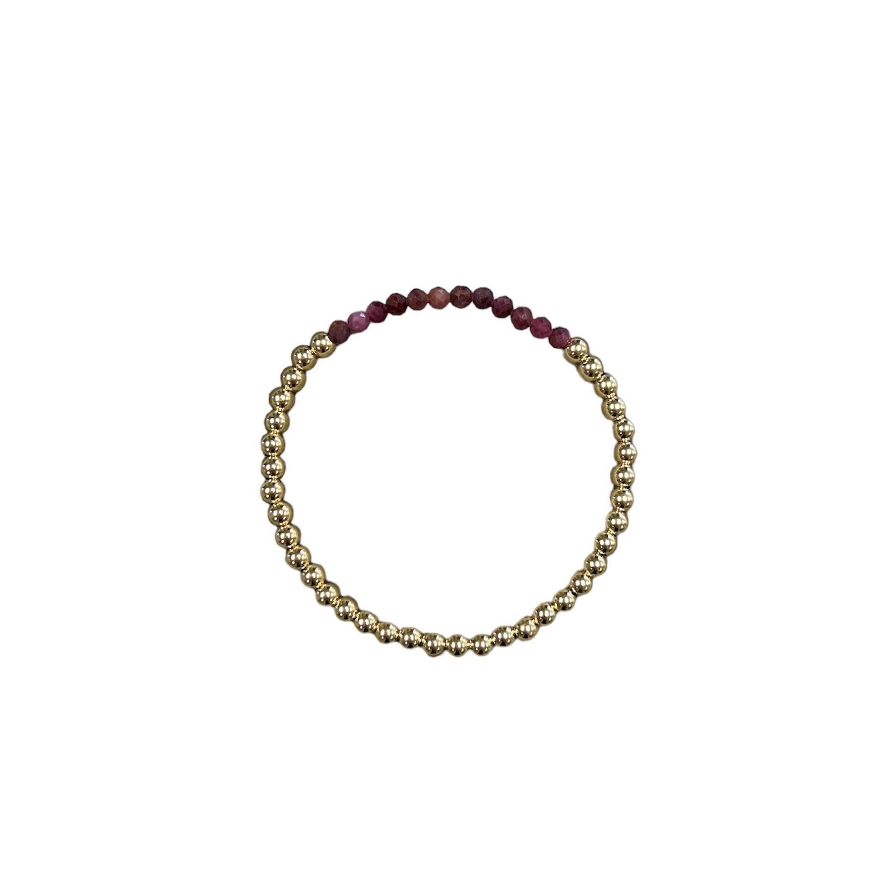 JULY Birthstone: Rubine + Gold Filled Beaded Birthstone Bar Stretch Bracelet