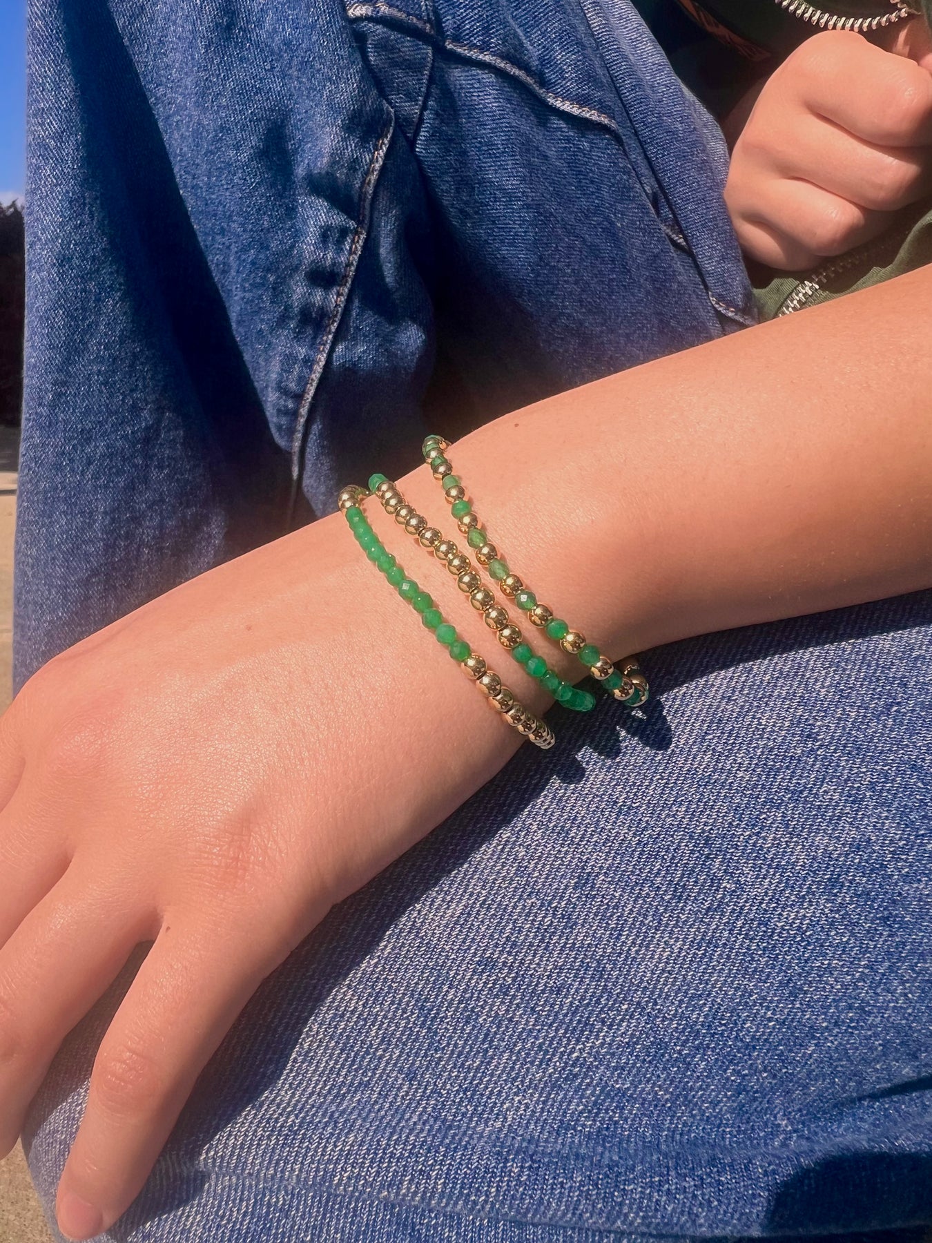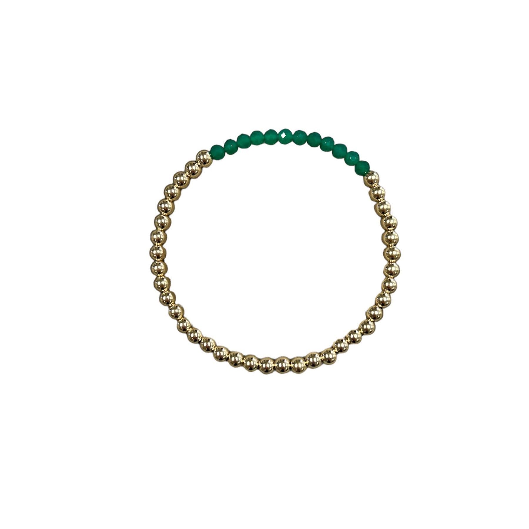 MAY Birthstone: Green Agate + Gold Filled Beaded Birthstone Bar Stretch Bracelet