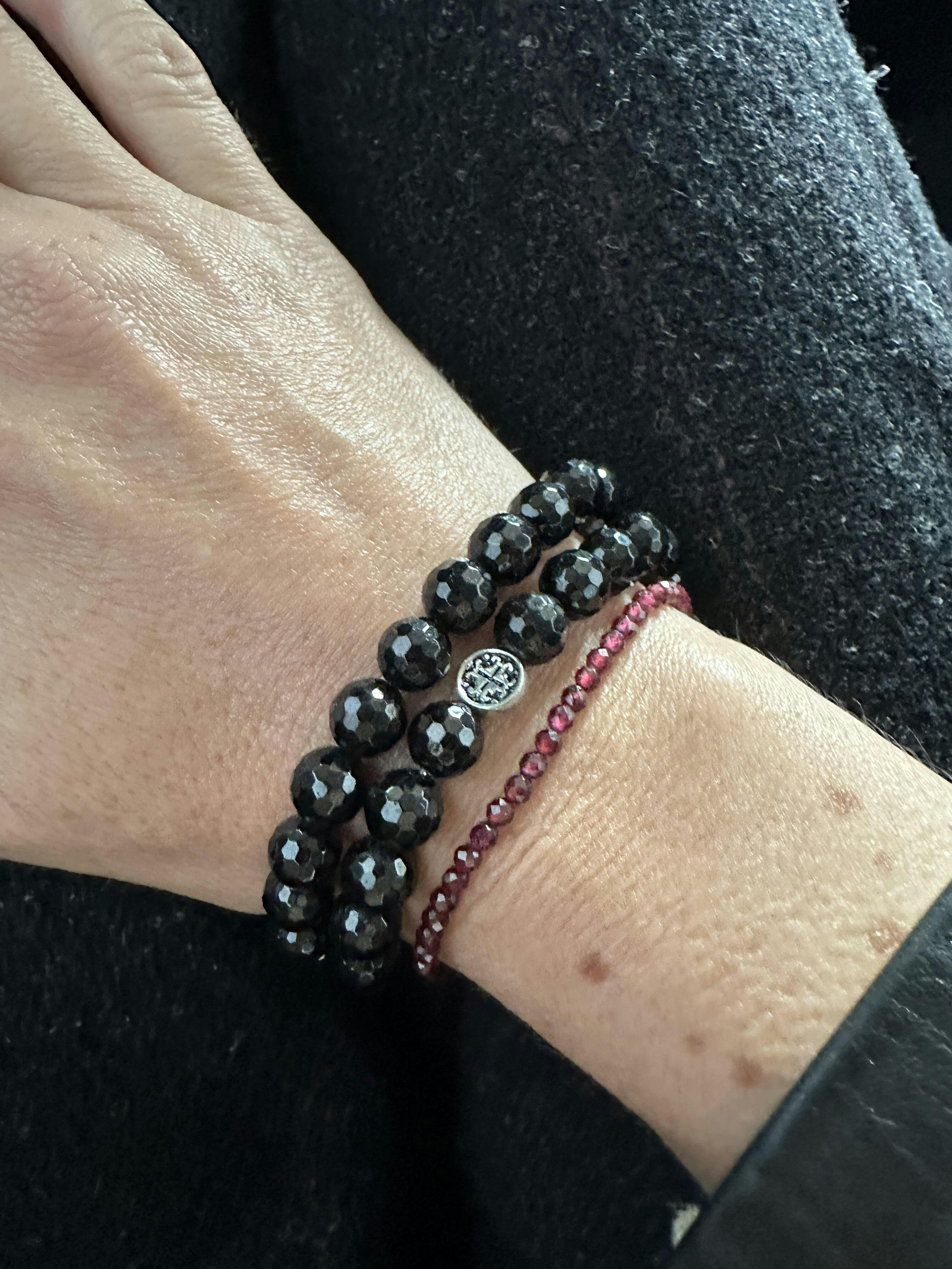 PROTECTION: Black Tourmaline Faceted Stretch Bracelet 8mm